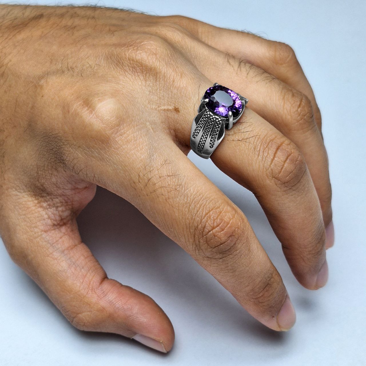 انگشتر مردانه بسیار شیک با طرح رکاب خاص و نگینِ خوش رنگ و خوش تراش آمیتیست! گوهر به کار رفته در این انگشتر کاملا طبیعی و معدنی میباشد و همچنین تراش آن لیزر کات است؛ یعنی با لیزر به دقیق ترین شکل ممکن تراش داده شده است که زیباییاش رو دوچندان کرده و واقعا مجذوب کننده است! همچنین جنس رکاب از نقره 925 یعنی بالاترین عیار مورد استفاده در ساخت جواهرات است که با نهایت دقت و ظرافت ساخته شده است. همچنین در مورد سایز انگشتر اصلا نگران نباشید. سایز انگشتر سایز متوسط میباشد و اگر برای انگشت شما بزرگ یا کوچک باشد در نقره فروشی ها، طلافروشی ها، جواهر فروشی ها یا تعمیرات نقره شهرتان با هزینه ناچیزی قابل سایز شدن است. انگشتر به همراه جعبه چوبی تقدیم میشود.