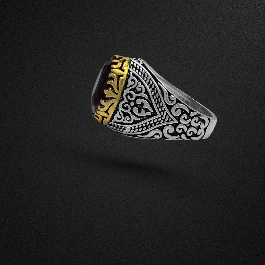 انگشتر مردانه بسیار شیک با طرح رکاب خاص و نگینِ خوش رنگ و خوش تراش آمیتیست! گوهر به کار رفته در این انگشتر کاملا طبیعی و معدنی میباشد و همچنین تراش آن تراشی بینقص است که به دقیق ترین شکل ممکن انجام شده است و زیباییاش را دوچندان کرده و واقعا مجذوب کننده است! همچنین جنس رکاب تماما از نقره 925 یعنی بالاترین عیار مورد استفاده در ساخت جواهرات است که با نهایت دقت و ظرافت ساخته شده است. همچنین در مورد سایز انگشتر اصلا نگران نباشید. سایز انگشتر سایز متوسط میباشد و اگر برای انگشت شما بزرگ یا کوچک باشد در نقره فروشی ها، طلافروشی ها، جواهر فروشی ها یا تعمیرات نقره شهرتان با هزینه ناچیزی قابل سایز شدن است. انگشتر به همراه جعبه چوبی تقدیم میشود.