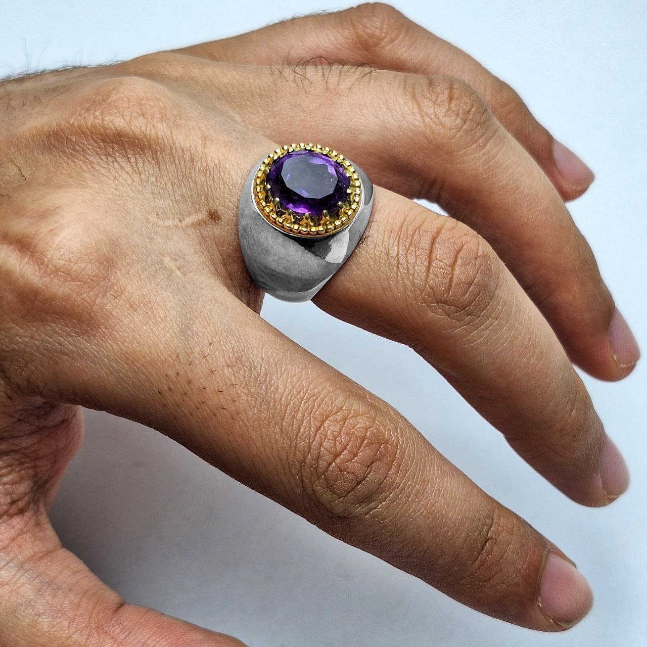 انگشتر مردانه بسیار شیک با طرح رکاب فیلی(ساده) و نگینِ خوش رنگ و خوش تراش آمیتیست! گوهر به کار رفته در این انگشتر کاملا طبیعی و معدنی میباشد و همچنین تراش آن تراشی بینقص است که به دقیق ترین شکل ممکن انجام شده است و زیباییاش را دوچندان کرده و واقعا مجذوب کننده است! همچنین جنس رکاب تماما از نقره 925 یعنی بالاترین عیار مورد استفاده در ساخت جواهرات است که با نهایت دقت و ظرافت ساخته شده است. همچنین در مورد سایز انگشتر اصلا نگران نباشید. سایز انگشتر سایز متوسط میباشد و اگر برای انگشت شما بزرگ یا کوچک باشد در نقره فروشی ها، طلافروشی ها، جواهر فروشی ها یا تعمیرات نقره شهرتان با هزینه ناچیزی قابل سایز شدن است. انگشتر به همراه جعبه چوبی تقدیم میشود.