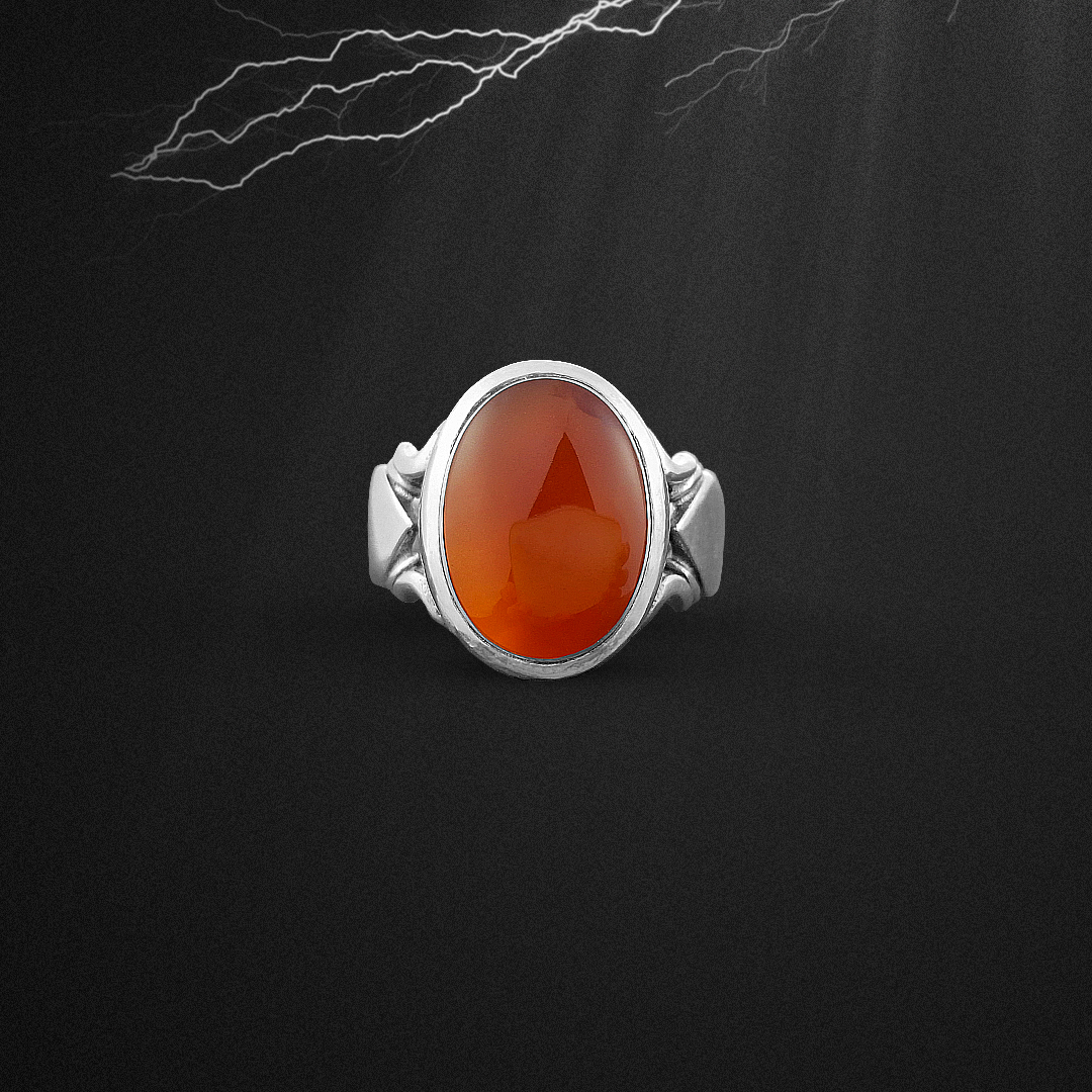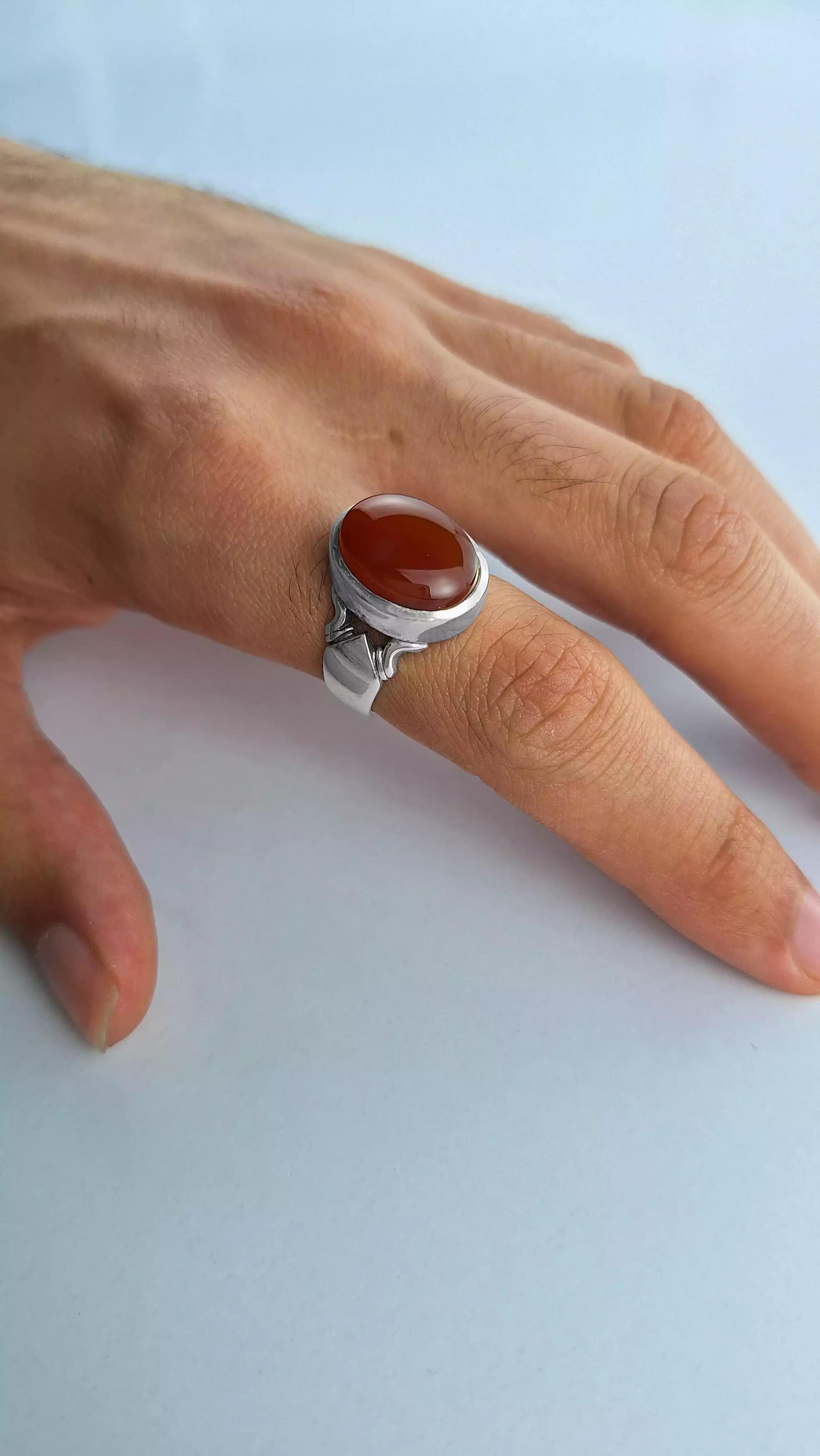گوهر به کار رفته در این انگشتر کاملا طبیعی و معدنیست و برخلاف اکثر عقیق های داخل بازار که رنگ شده هستند، رنگی طبیعی دارد.