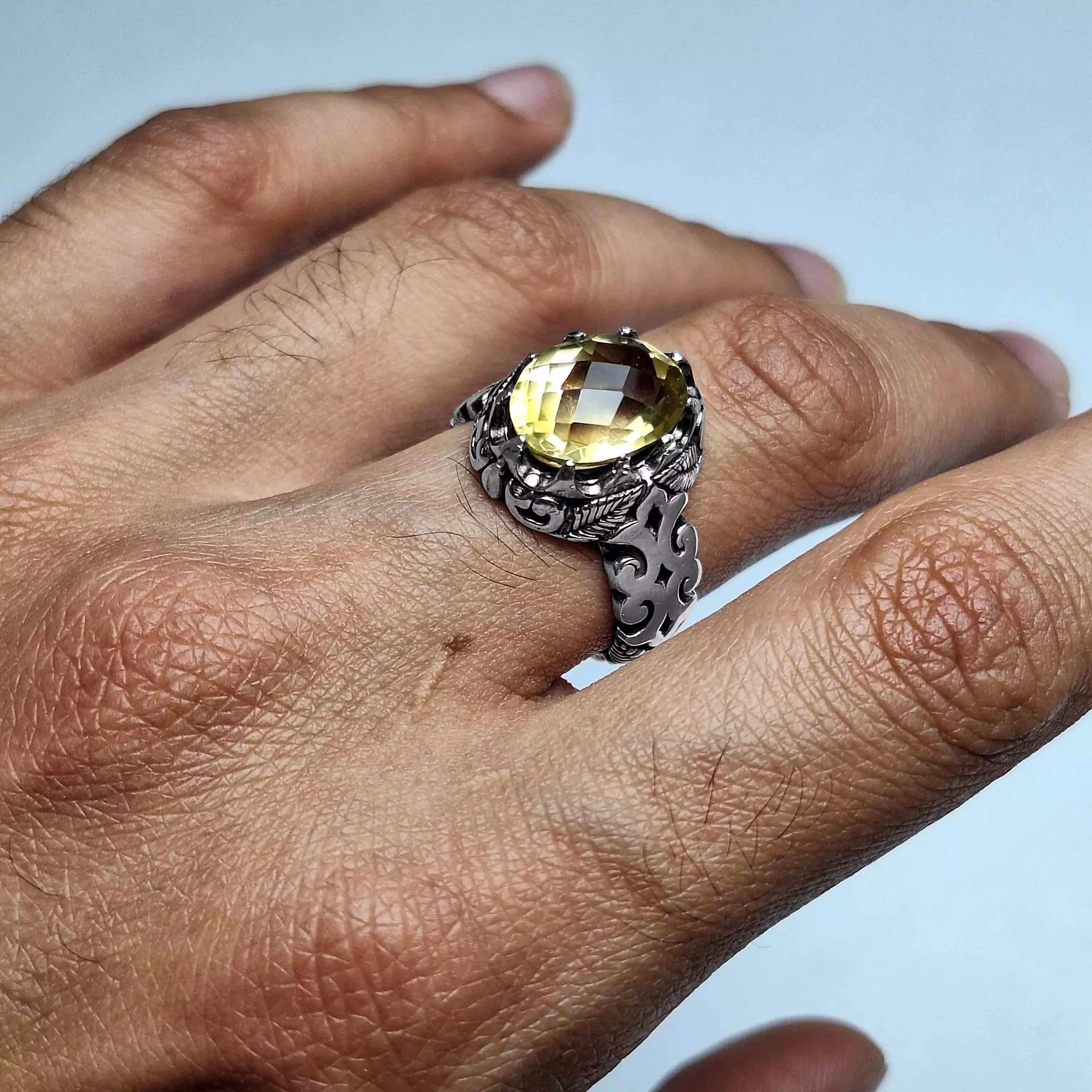 انگشتر مردانه بسیار شیک با طرح رکاب برگدار و نگینِ مجذوب کننده سیترین