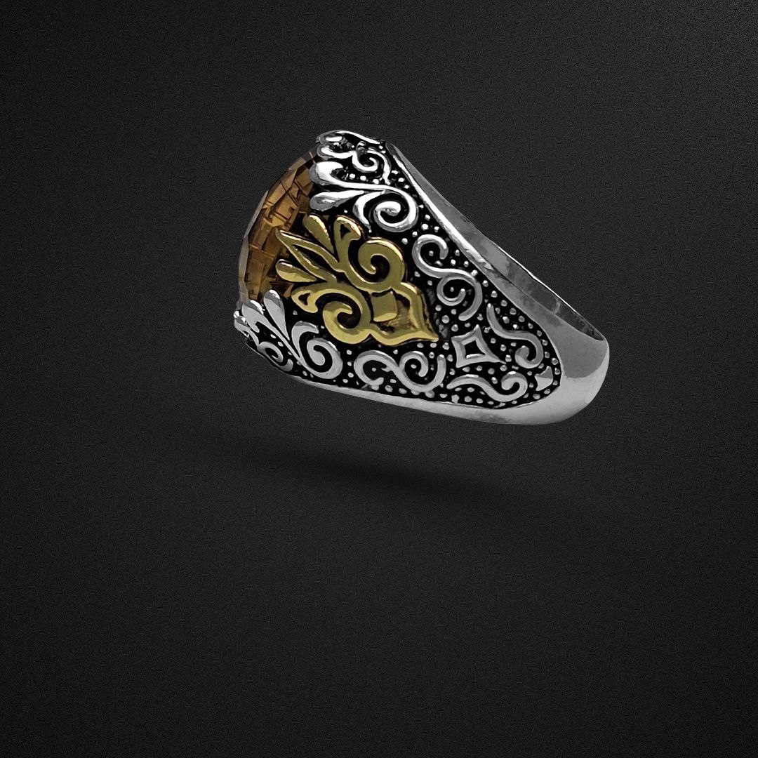 انگشتر مردانه بسیار شیک با طرح رکاب خاص و نگینِ ارزشمند سیترین است گوهر ارزشمند به کار رفته در این انگشتر کاملا طبیعی و معدنیست و همچنین تراش آن تراشی خاص و بینقص معروف به فوتبالکات که با لیزر انجام شده است که زیباییاش را دو چندان کرده است! این بالاترین کیفیت سیترین طبیعی است! جنس رکاب از نقره 925 یعنی بالاترین عیار مورد استفاده در ساخت جواهرات است که با نهایت دقت و ظرافت ساخته شده است. در مورد سایز انگشتر اصلا نگران نباشید سایز انگشتر سایز متوسط میباشد و اگر برای انگشت شما بزرگ یا کوچک باشد در نقره فروشی ها، طلافروشی ها، جواهر فروشی ها یا تعمیرات نقره شهرتان با هزینه ناچیزی قابل تغییر سایز است. به همراه جعبه چوبی تقدیم میشود.