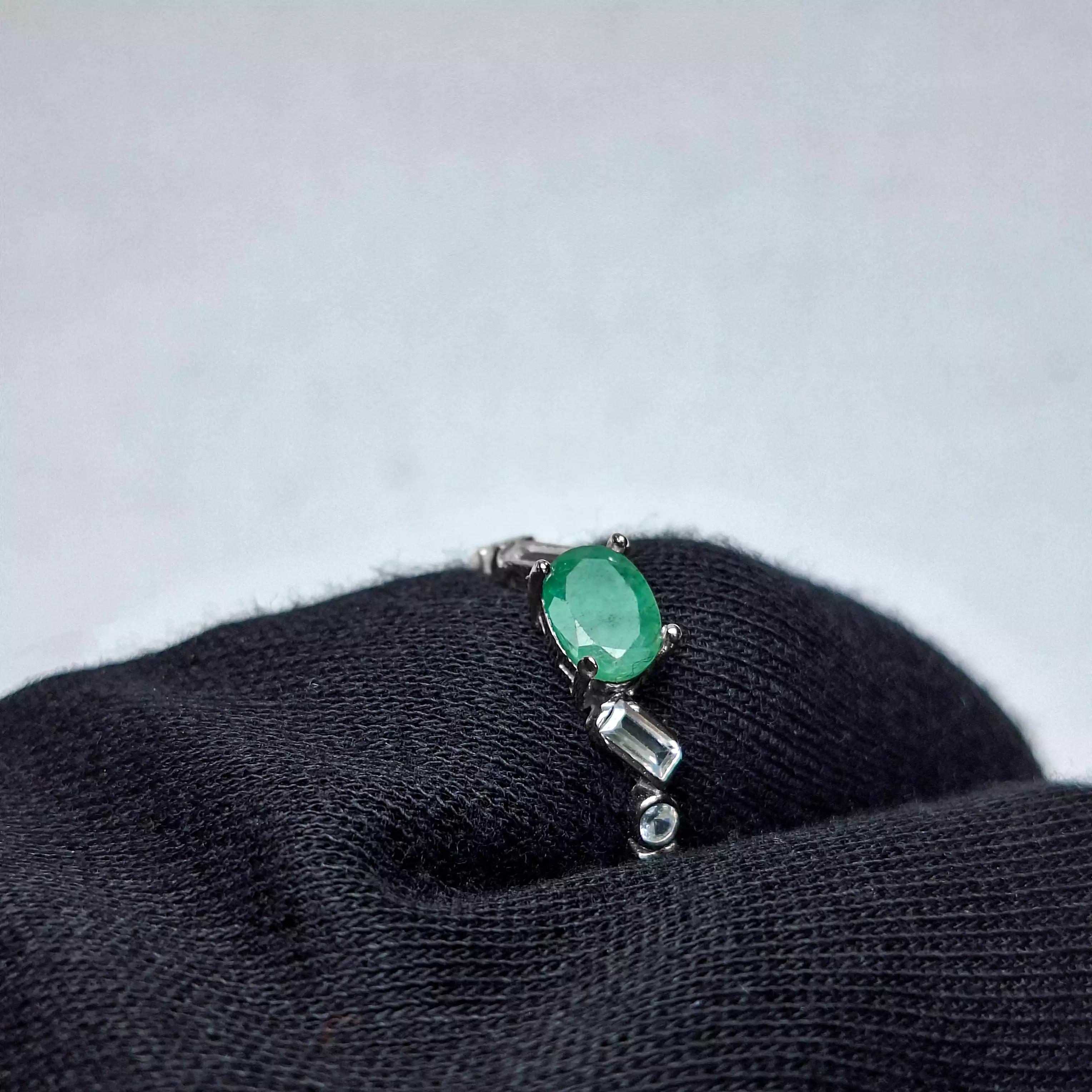 انگشتر زنانه بسیار شیک با طرح رکاب خاص و نگینِ مجذوب کننده زمرد زامبیا
