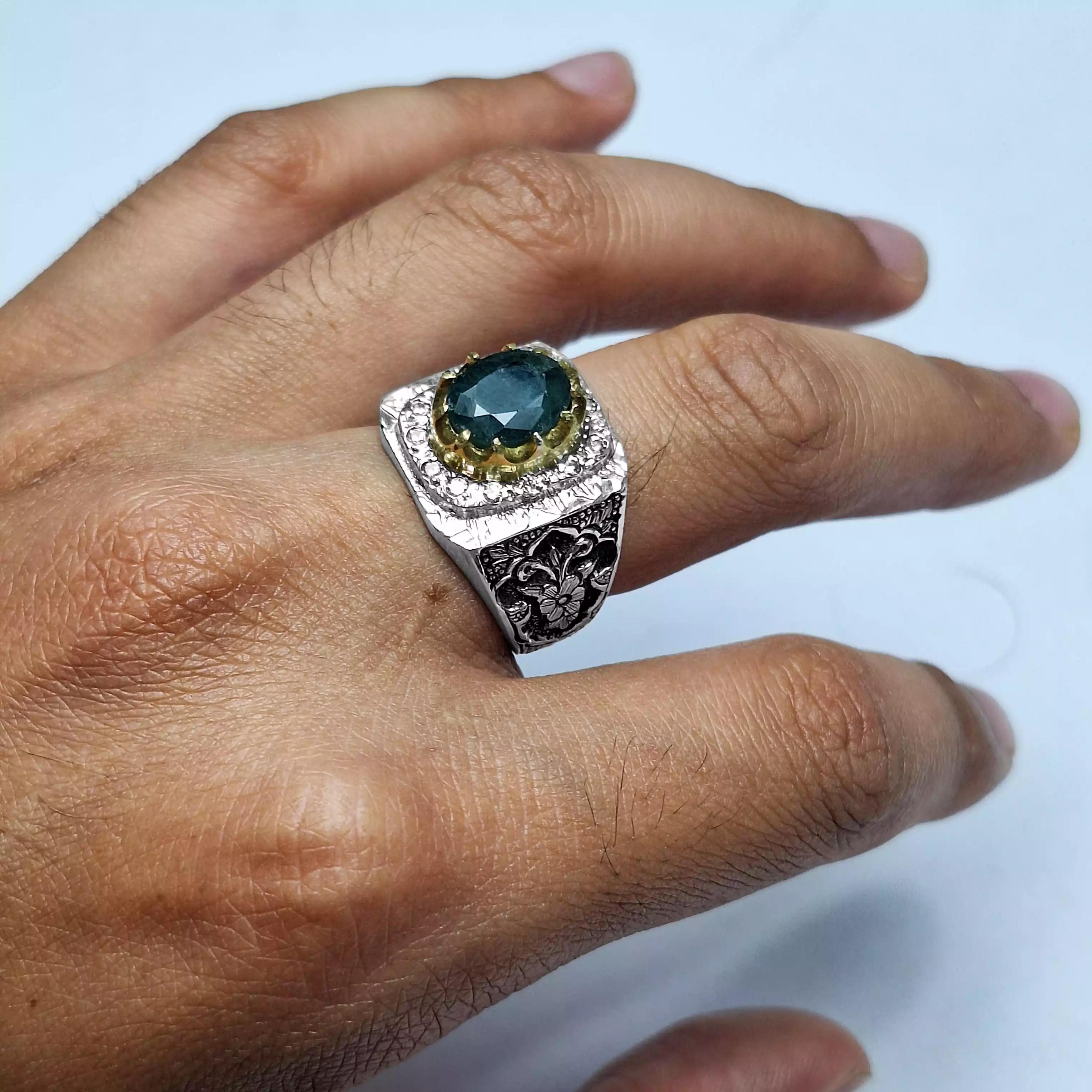انگشتر مردانه فاخر با رکاب خاص و نگین ارزشمند زمرد