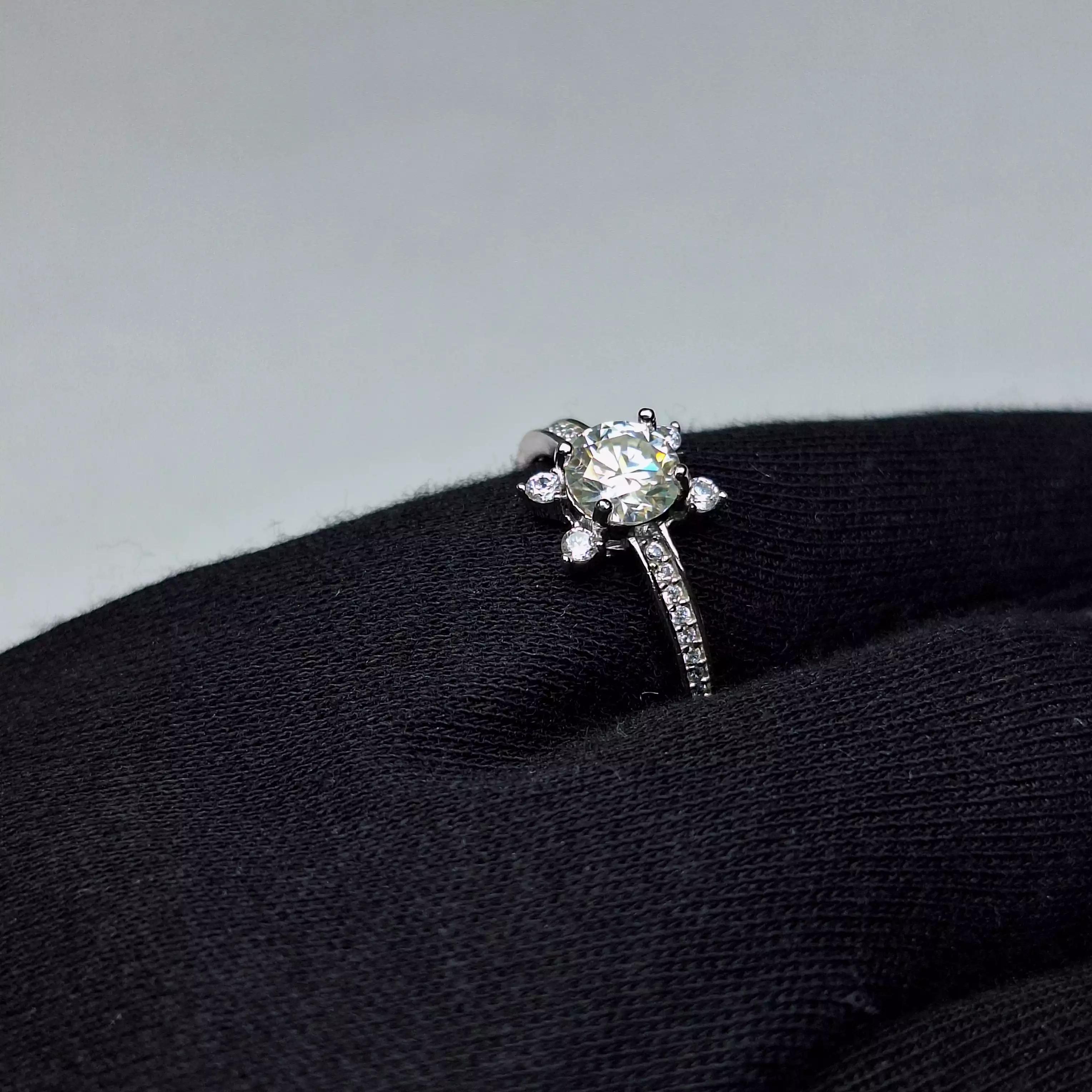 انگشتر زنانه بسیار شیک با طرح رکاب چهار مخراج و نگینِ مجذوب کننده موزانایت (الماس روسی) است گوهر ارزشمند به کار رفته در این انگشتر گوهری بسیار خاص و زیباست و همچنین تراش آن تراشی بینقص است که با لیزر انجام شده و زیباییاش را دو چندان کرده است! این نگین پر تلالو ترین و درخشنده ترین نگین بین تمام گوهر های طبیعی و مصنوعی است؛ این گوهر آنقدر درخشنده است که حتی عکاسی از آن را سخت کرده است! همچنین این گوهر دومین ماده سخت جهان است! همچنین جنس رکاب از نقره 925 یعنی بالاترین عیار مورد استفاده در ساخت جواهرات است. در مورد سایز انگشتر اصلا نگران نباشید سایز انگشتر سایز متوسط میباشد و اگر برای انگشت شما بزرگ یا کوچک باشد در نقره فروشی ها، طلافروشی ها، جواهر فروشی ها یا تعمیرات نقره شهرتان با هزینه ناچیزی قابل تغییر سایز است. انگشتر به همراه جعبه چوبی تقدیمتان میشود.