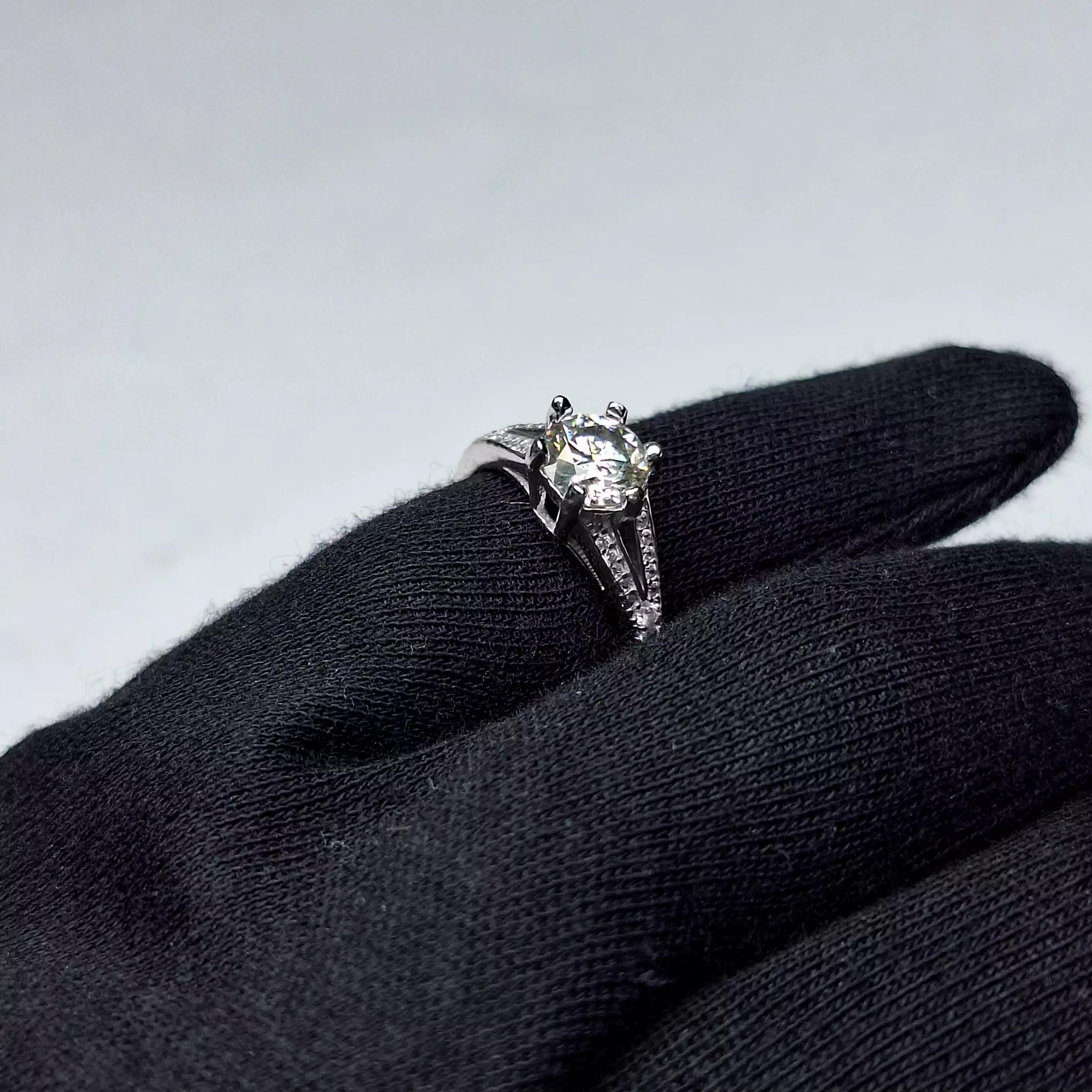 انگشتر زنانه بسیار شیک با طرح رکاب شش چنگ و نگینِ مجذوب کننده موزانایت (الماس روسی)