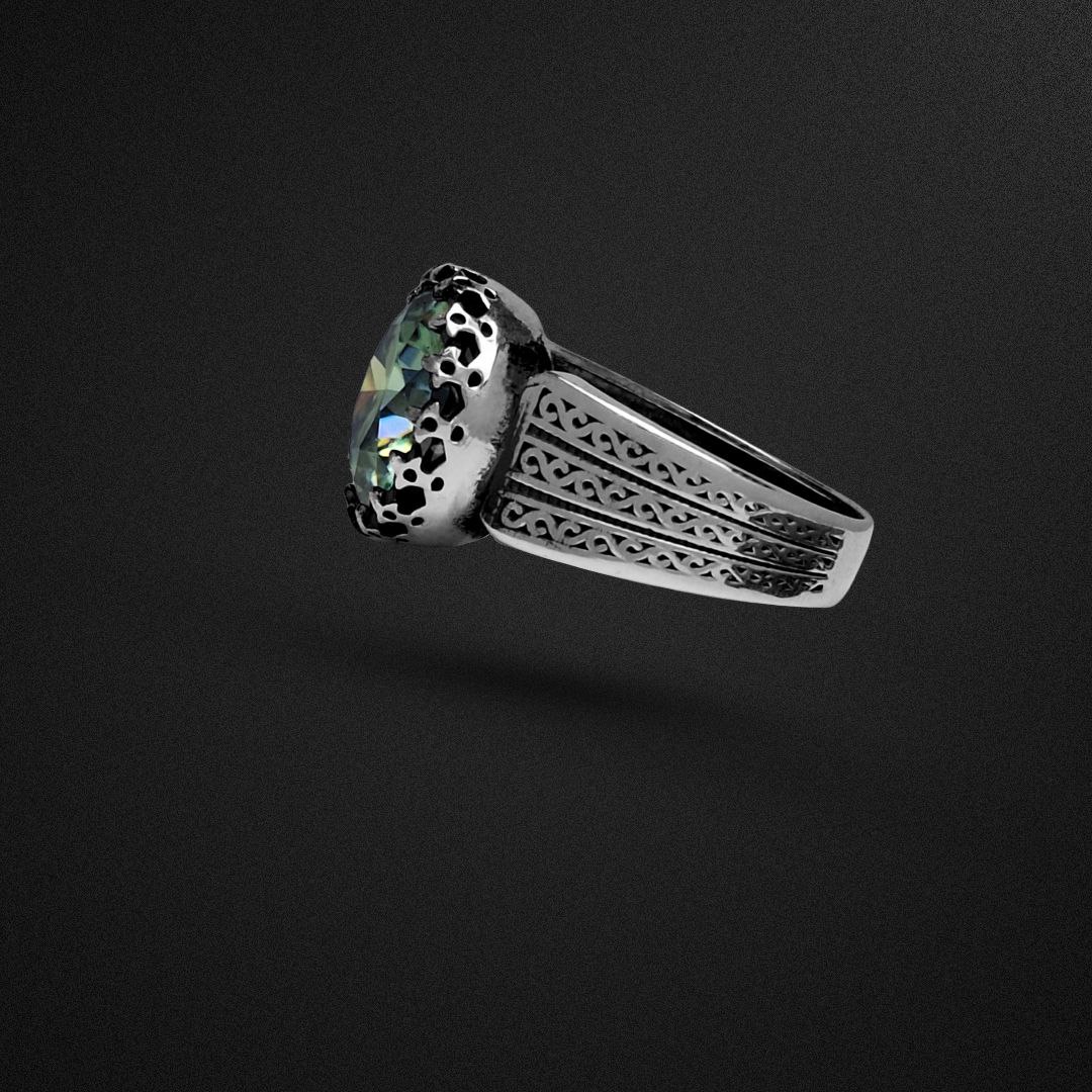 انگشتر مردانه بسیار شیک با طرح رکاب خاص و نگینِ مجذوب کننده و ارزشمند موزانایت (الماس روسی) گوهر ارزشمند به کار رفته در این انگشتر باکیفیت ترین نمونه ممکن از موزانایت سبز پرطاووسی است که گوهری بسیار خاص و زیباست و همچنین تراش آن تراشی بینقص است که با لیزر انجام شده و زیباییاش را دو چندان کرده است! این نگین پر تلالو ترین و درخشنده ترین نگین بین تمام گوهر های طبیعی و مصنوعی است؛ این گوهر آنقدر درخشنده است که حتی عکاسی از آن را سخت کرده است! همچنین این گوهر دومین ماده سخت جهان است! همچنین جنس رکاب تماما از نقره 925 یعنی بالاترین عیار مورد استفاده در ساخت جواهرات است که با نهایت دقت و ظرافت ساخته شده است. در مورد سایز انگشتر اصلا نگران نباشید سایز انگشتر سایز متوسط میباشد و اگر برای انگشت شما بزرگ یا کوچک باشد در نقره فروشی ها، طلافروشی ها، جواهر فروشی ها یا تعمیرات نقره شهرتان با هزینه ناچیزی قابل تغییر سایز است. انگشتر به همراه جعبه چوبی تقدیم میشود.
