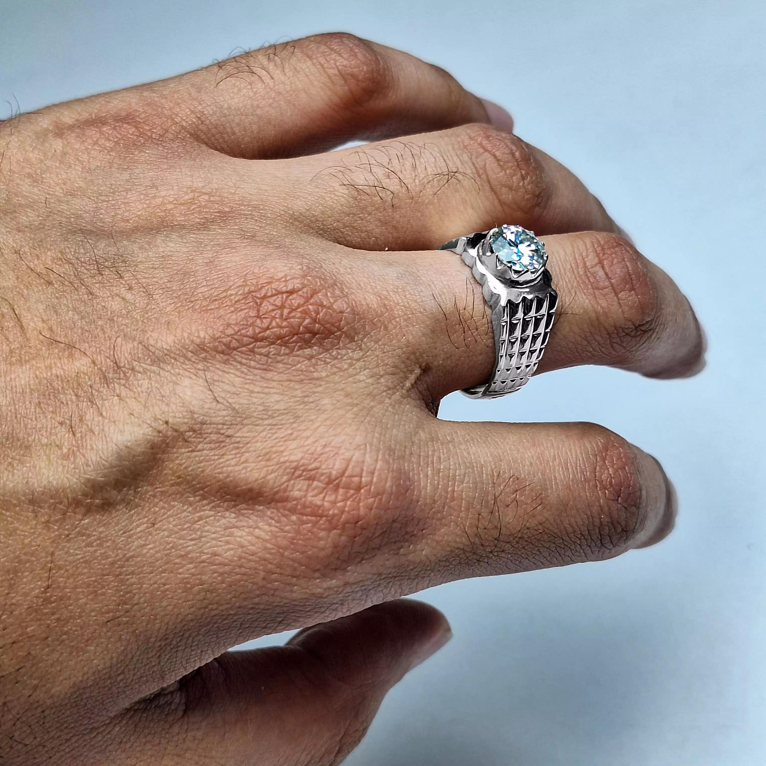 انگشتر مردانه شیک و زیبا با نگینِ خاص و پر تلالو الماس روسی