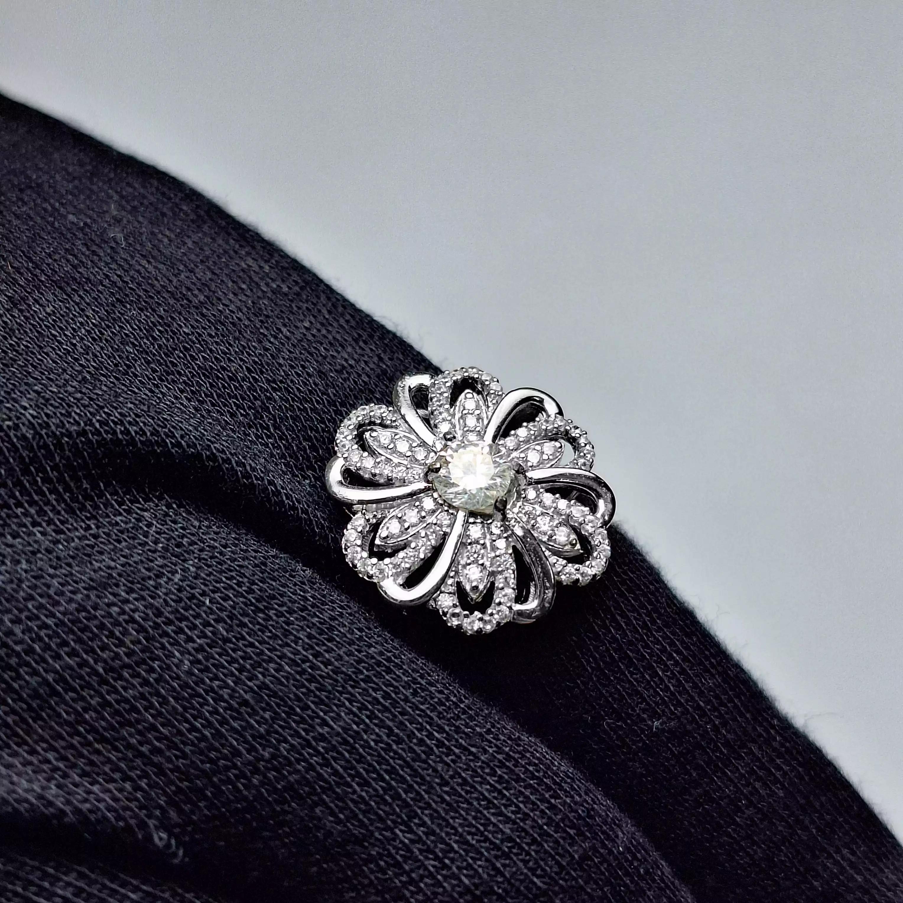 انگشتر زنانه بسیار شیک با طرح رکاب طرح گل و نگینِ و خوش تراش و پرتلالوی موزانایت یا همان الماس روسی