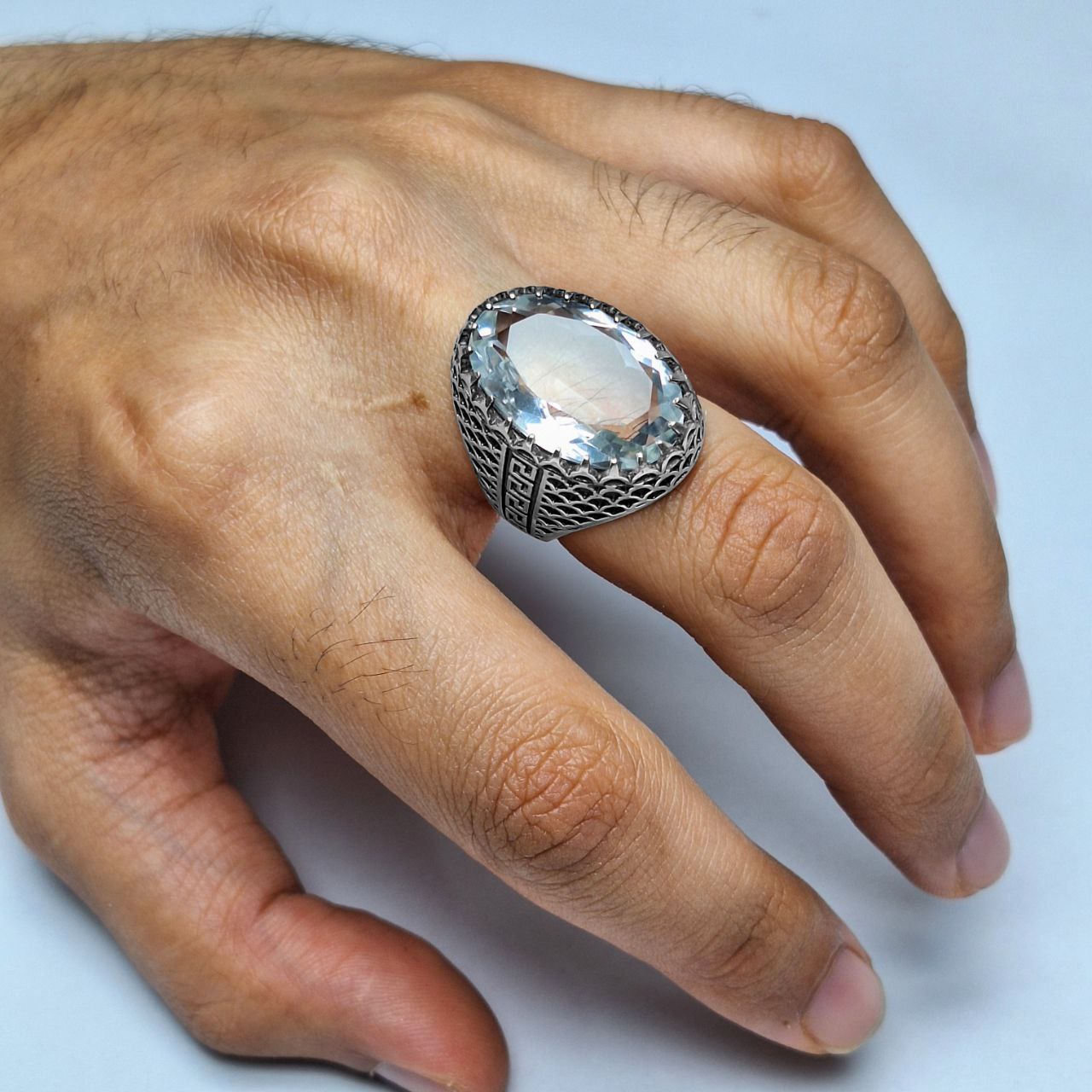 انگشتر مردانه بسیار شیک با طرح رکاب خاص و نگینِ جذاب و خوش تراش کوارتز! گوهر به کار رفته در این انگشتر کاملا طبیعی و معدنی میباشد و همچنین تراش آن تراشی بی نقص است که زیباییاش را دوچندان کرده و واقعا مجذوب کننده است! همچنین جنس رکاب تماما از نقره 925 یعنی بالاترین عیار مورد استفاده در ساخت جواهرات است که با نهایت دقت و ظرافت ساخته شده است. همچنین در مورد سایز انگشتر اصلا نگران نباشید. سایز انگشتر سایز متوسط میباشد و اگر برای انگشت شما بزرگ یا کوچک باشد در نقره فروشی ها، طلافروشی ها، جواهر فروشی ها یا تعمیرات نقره شهرتان با هزینه ناچیزی قابل سایز شدن است. انگشتر به همراه جعبه چوبی تقدیم میشود.