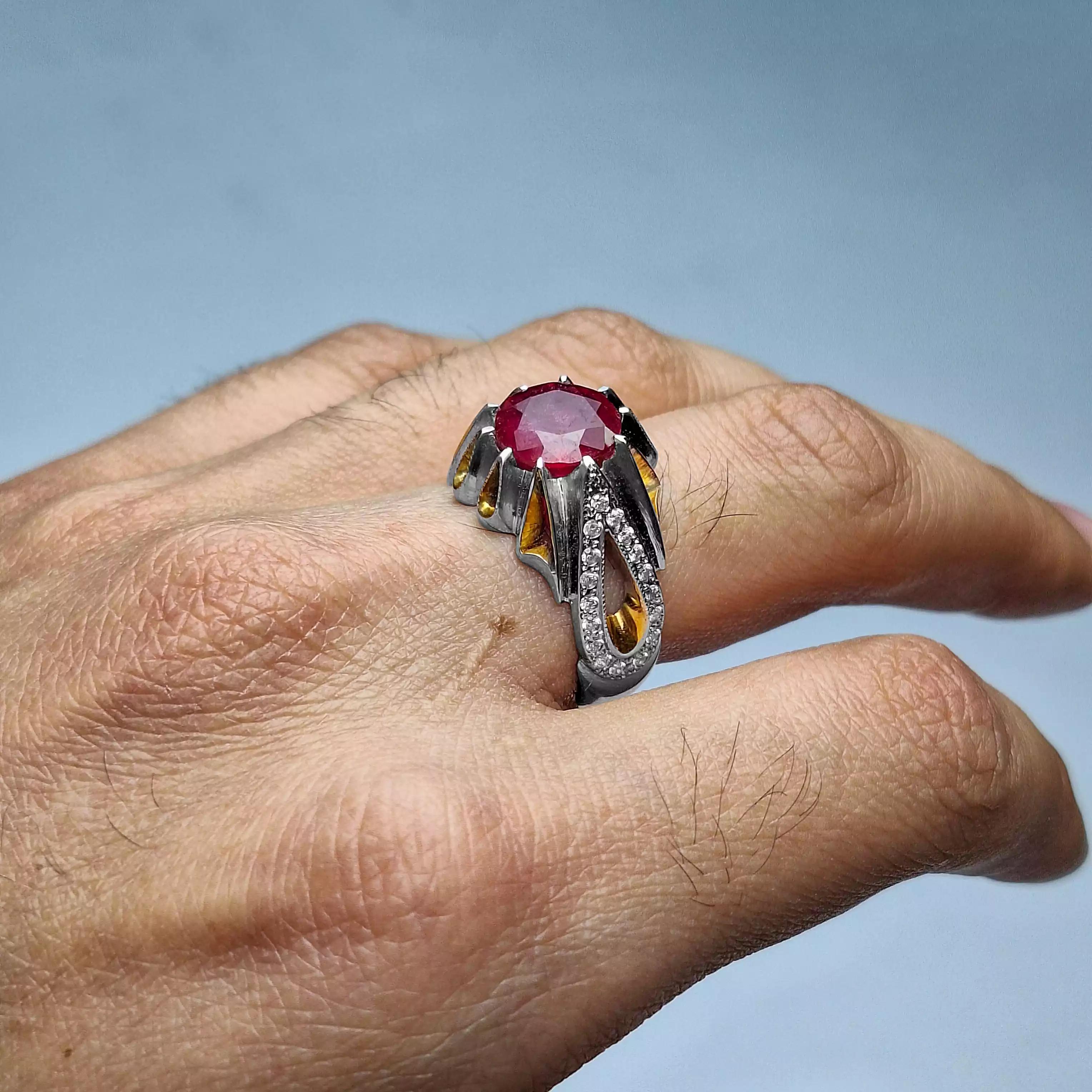انگشتر مردانه بسیار شیک با رکاب پرکار و نگینِ ارزشمند یاقوت سرخ