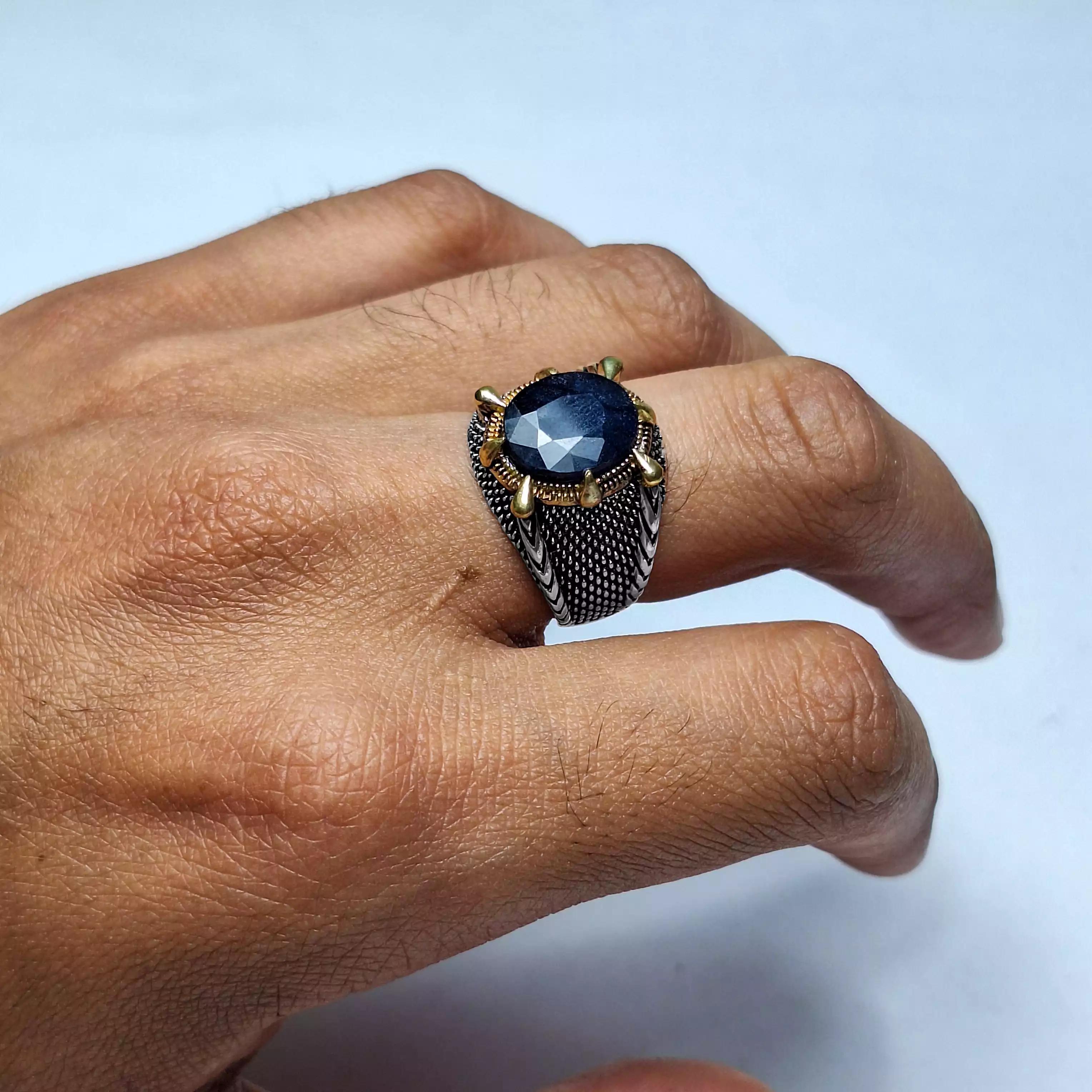 انگشتر مردانه بسیار شیک با طرح رکاب پوست و چنگ اژدها و نگین مجذوب کننده یاقوت کبود گوهر ارزشمند به کار رفته در این انگشتر کاملا طبیعی و معدنی است که از دل معادن آفریقا استخراج شده و همچنین تراش آن تراشی بینقص است که زیباییاش را دو چندان کرده است. همچنین جنس رکاب از نقره 925 یعنی بالاترین عیار مورد استفاده در ساخت جواهرات است. در مورد سایز انگشتر اصلا نگران نباشید سایز انگشتر سایز متوسط میباشد و اگر برای انگشت شما بزرگ یا کوچک باشد در نقره فروشی ها، طلافروشی ها، جواهر فروشی ها یا تعمیرات نقره شهرتان با هزینه ناچیزی قابل تغییر سایز است. انگشتر همراه با جعبه چوبی تقدیمتان میشود.