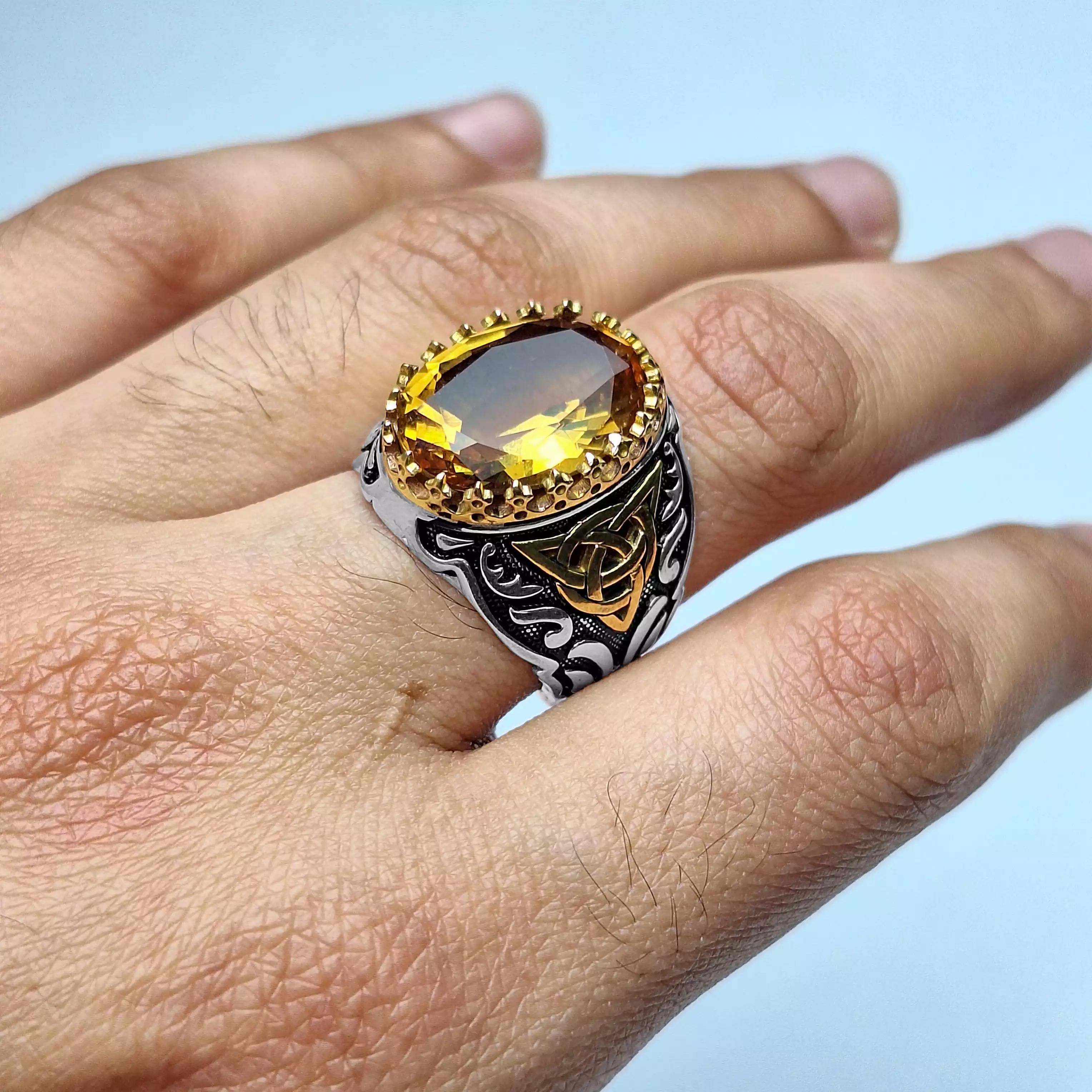 انگشتر مردانه بسیار شیک با طرح رکاب خاص تریکوئترا گره بینهایت وایکینگ و نگینِ مجذوب کننده الکساندریت گوهر ارزشمند به کار رفته در این انگشتر گوهری بسیار خاص است و همچنین تراش آن تراشی بینقص که با لیزر انجام شده است که زیباییاش را دو چندان کرده است! ویژگی اصلی این گوهر تغییر رنگ آن زیر نور های مختلف است، رنگ هایی مانند انواع سبز، زرد، نارنجی، قرمز، صورتی، بنفش، خاکستری، قهوهای و... جنس رکاب از نقره 925 یعنی بالاترین عیار مورد استفاده در ساخت جواهرات است. در مورد سایز انگشتر اصلا نگران نباشید سایز انگشتر سایز متوسط میباشد و اگر برای انگشت شما بزرگ یا کوچک باشد در نقره فروشی ها، طلافروشی ها، جواهر فروشی ها یا تعمیرات نقره شهرتان با هزینه ناچیزی قابل تغییر سایز است. انگشتر همراه با جعبه چوبی تقدیمتان میشود.