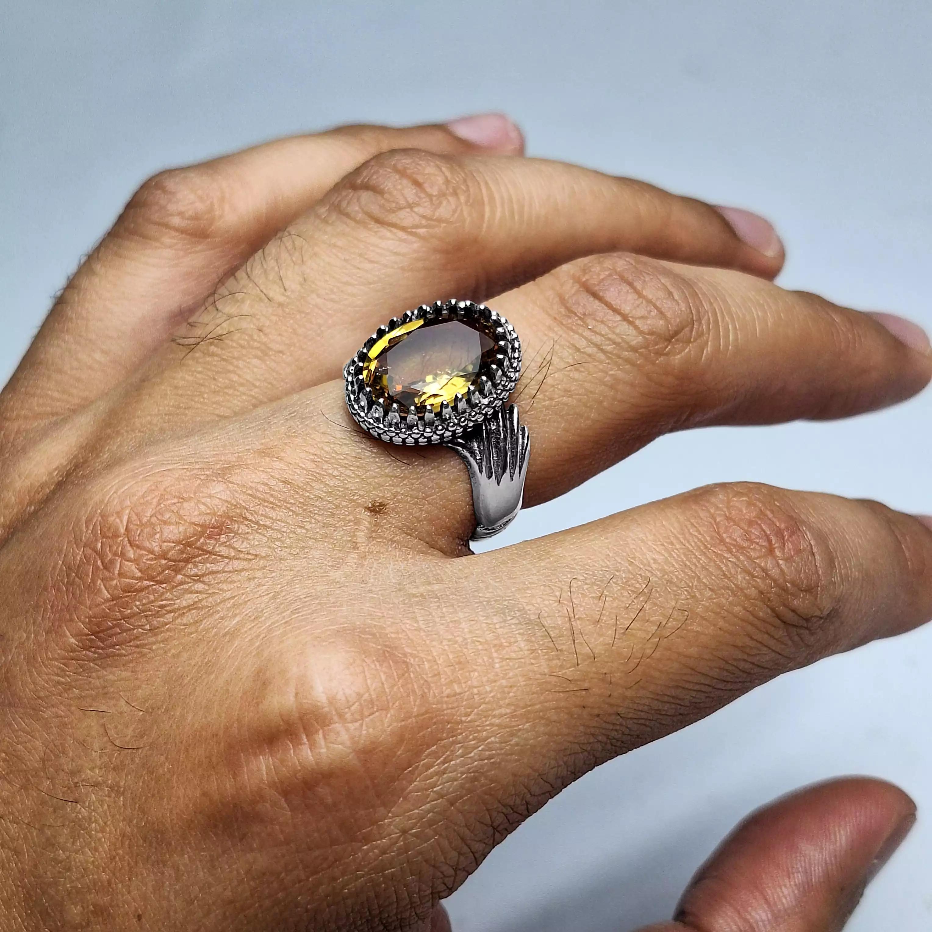 انگشتر مردانه بسیار شیک با طرح رکاب دست دلبر و نگین خاص الکساندریت گوهر ارزشمند به کار رفته در این انگشتر گوهری بسیار خاص است و همچنین تراش آن تراشی بینقص که با لیزر انجام شده است که زیباییاش را دو چندان کرده است! ویژگی اصلی این گوهر تغییر رنگ آن زیر نور های مختلف است، رنگ هایی مانند انواع سبز، زرد، نارنجی، قرمز، صورتی، بنفش، خاکستری، قهوهای و... جنس رکاب از نقره 925 یعنی بالاترین عیار مورد استفاده در ساخت جواهرات است. در مورد سایز انگشتر اصلا نگران نباشید سایز انگشتر سایز متوسط میباشد و اگر برای انگشت شما بزرگ یا کوچک باشد در نقره فروشی ها، طلافروشی ها، جواهر فروشی ها یا تعمیرات نقره شهرتان با هزینه ناچیزی قابل تغییر سایز است. انگشتر همراه با جعبه چوبی تقدیمتان میشود.